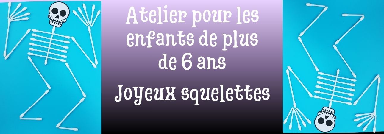 Clac, clic, clac, c'est la danse des squelettes ! Un peu de colle et des cotons-tiges, il n'en faut pas plus pour réaliser des squelettes qui viendront décorer ta maison. Un atelier pour les enfants à partir de 6 ans.