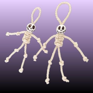 Squelette et citrouille en macramé Des nœuds, des nœuds et encore des nœuds ! Pour finir avec un porte-clé squelette ou citrouille. Pour les enfants à partir de 8 ans